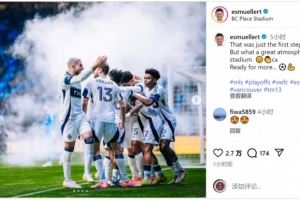 穆勒社媒晒出照片庆祝季后赛首胜,他写道:“这只是第一步,但球场内的氛围太棒了,准备迎来更多…⚽️”
